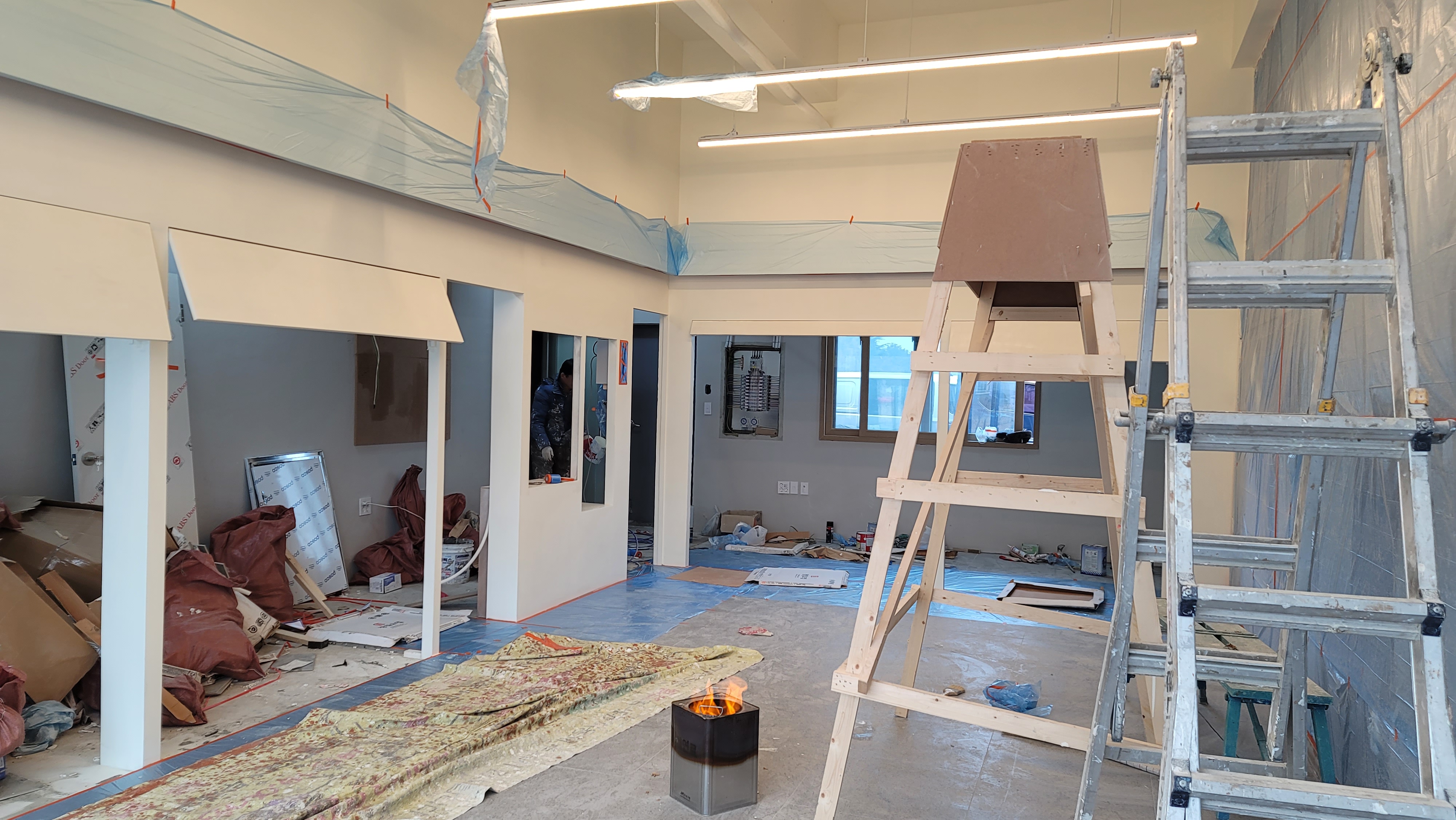 1)천정 높이가 높아 비계 발판 설치