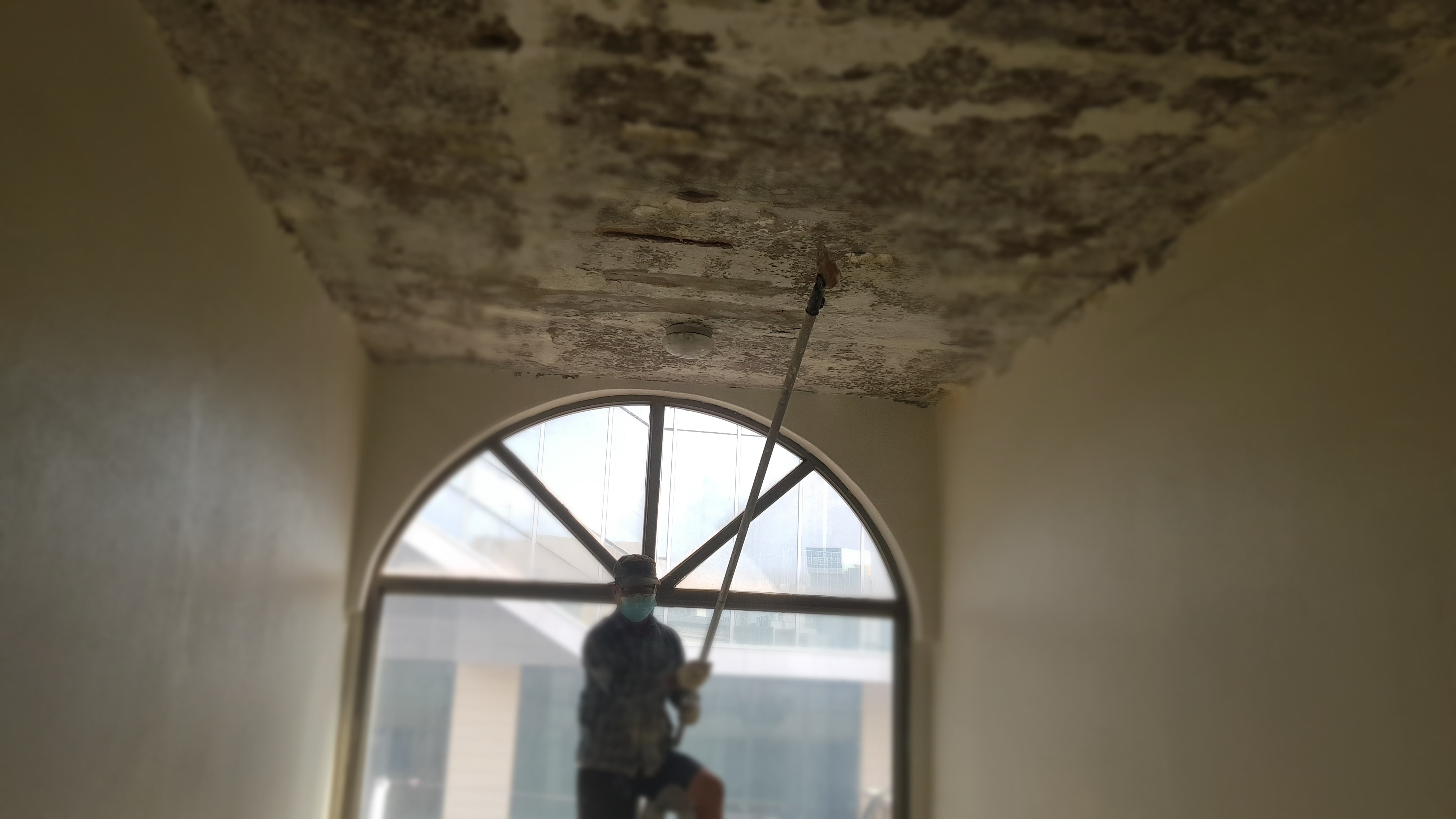 오랜 누수로 옥탑 천정의 모습