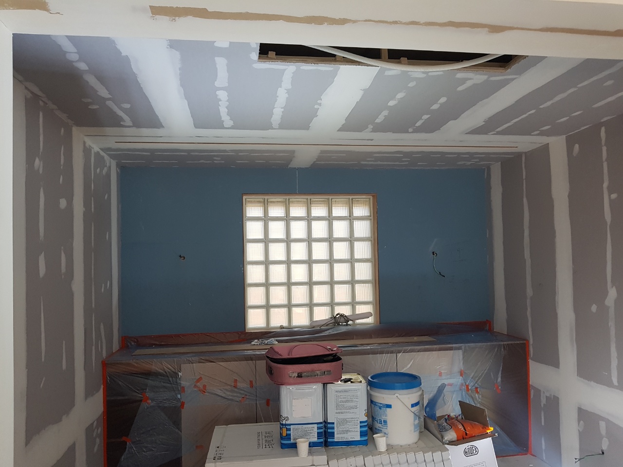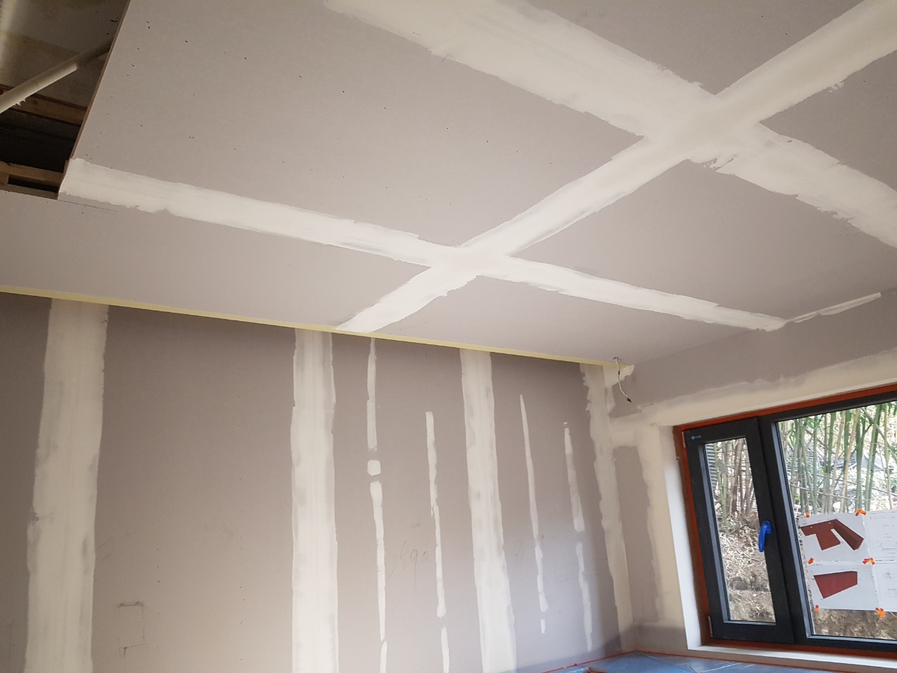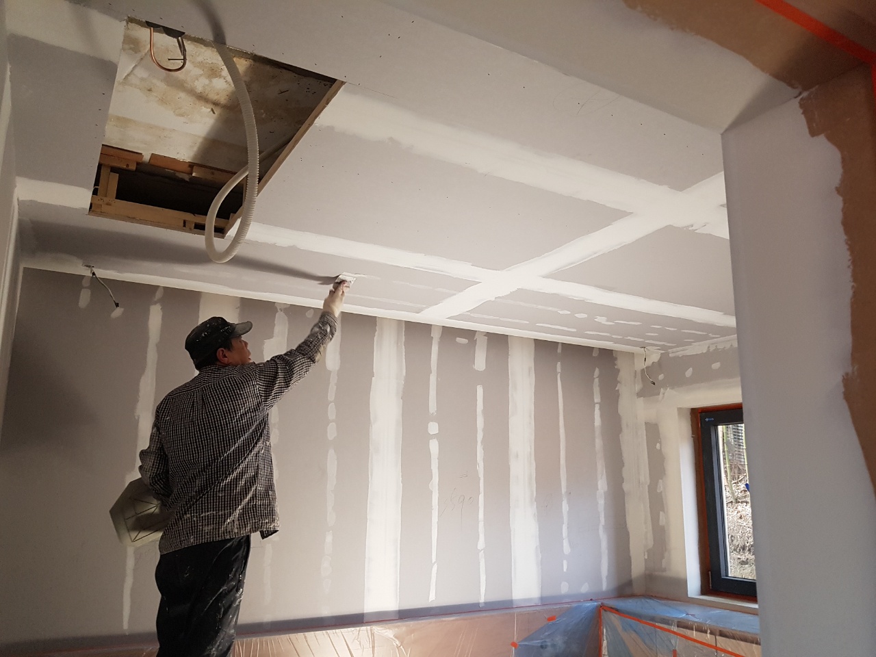 작업:석고 보드 위 한랭사 부착