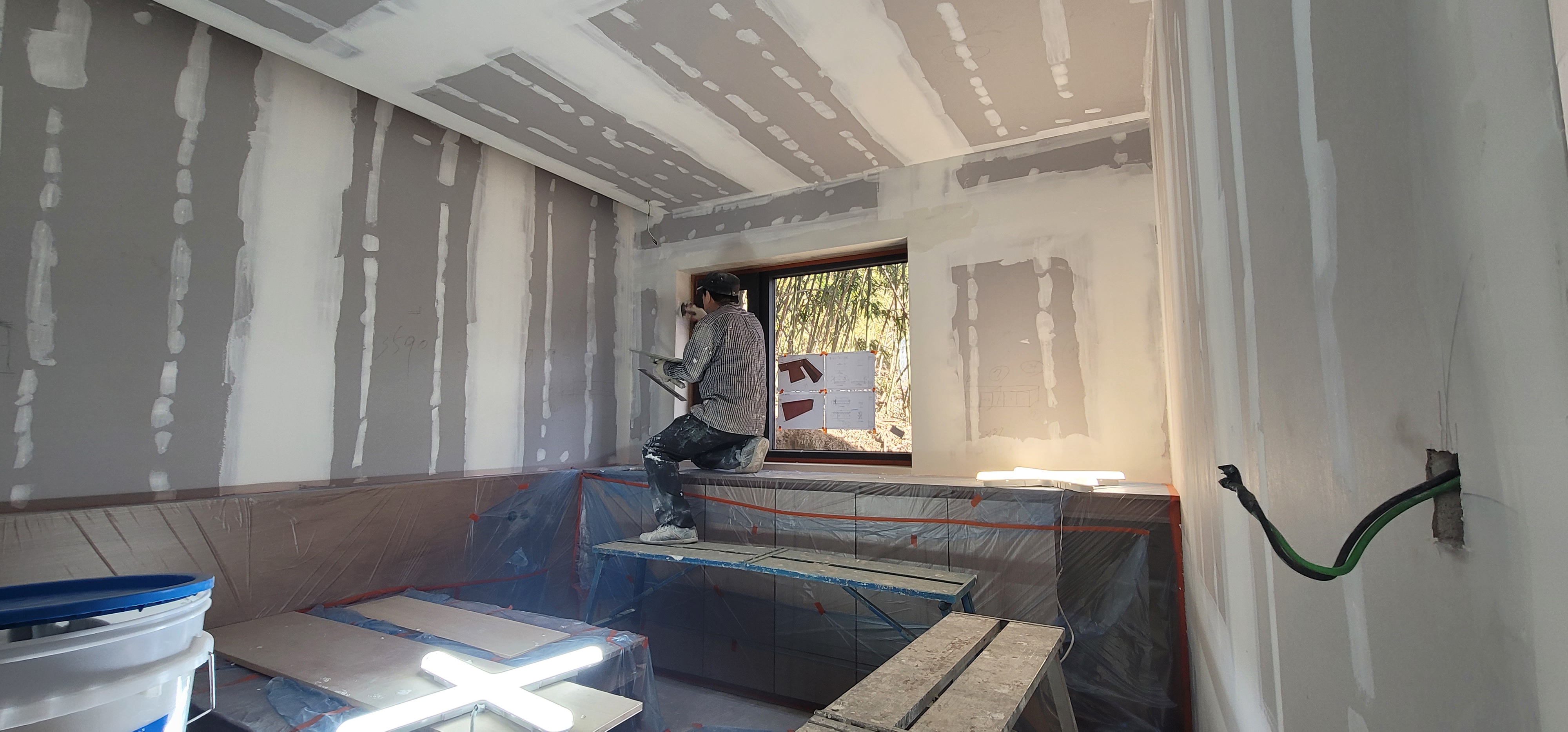 오늘 계획은 석고 보드 위 올 퍼티 작업 과 일부 사포질이다