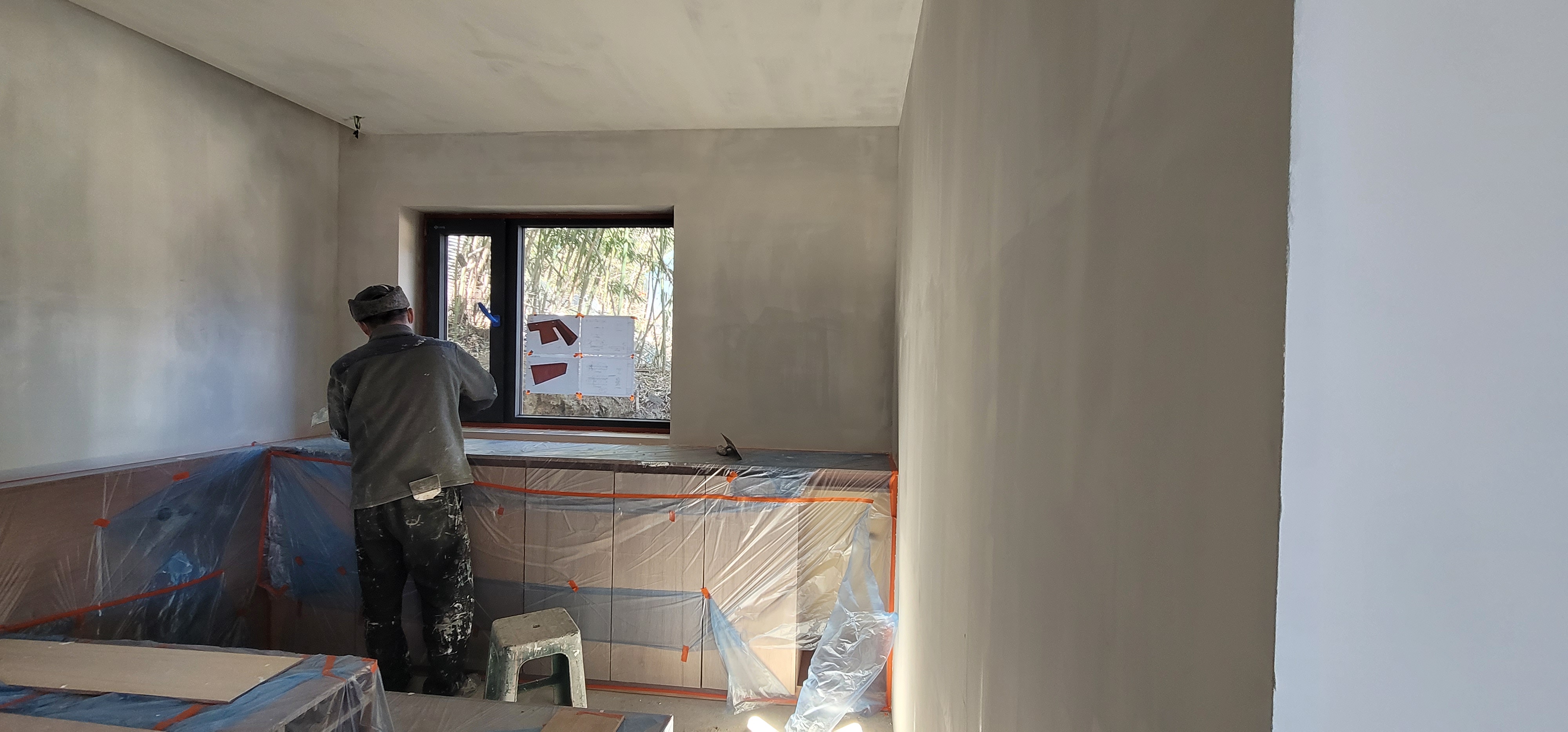 오전에 마친 올 퍼티 방에는 난로,알코홀 버너,선풍기로 강제 건조를
