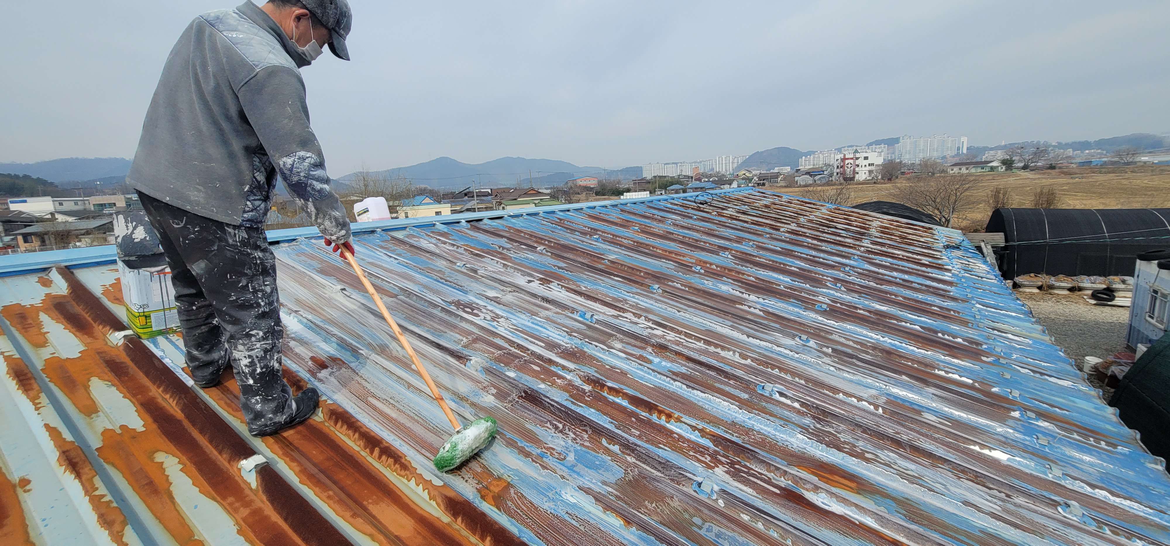 대구시 서구 공장 지붕 판넬 철재 우레탄 페인트-1.녹 제거