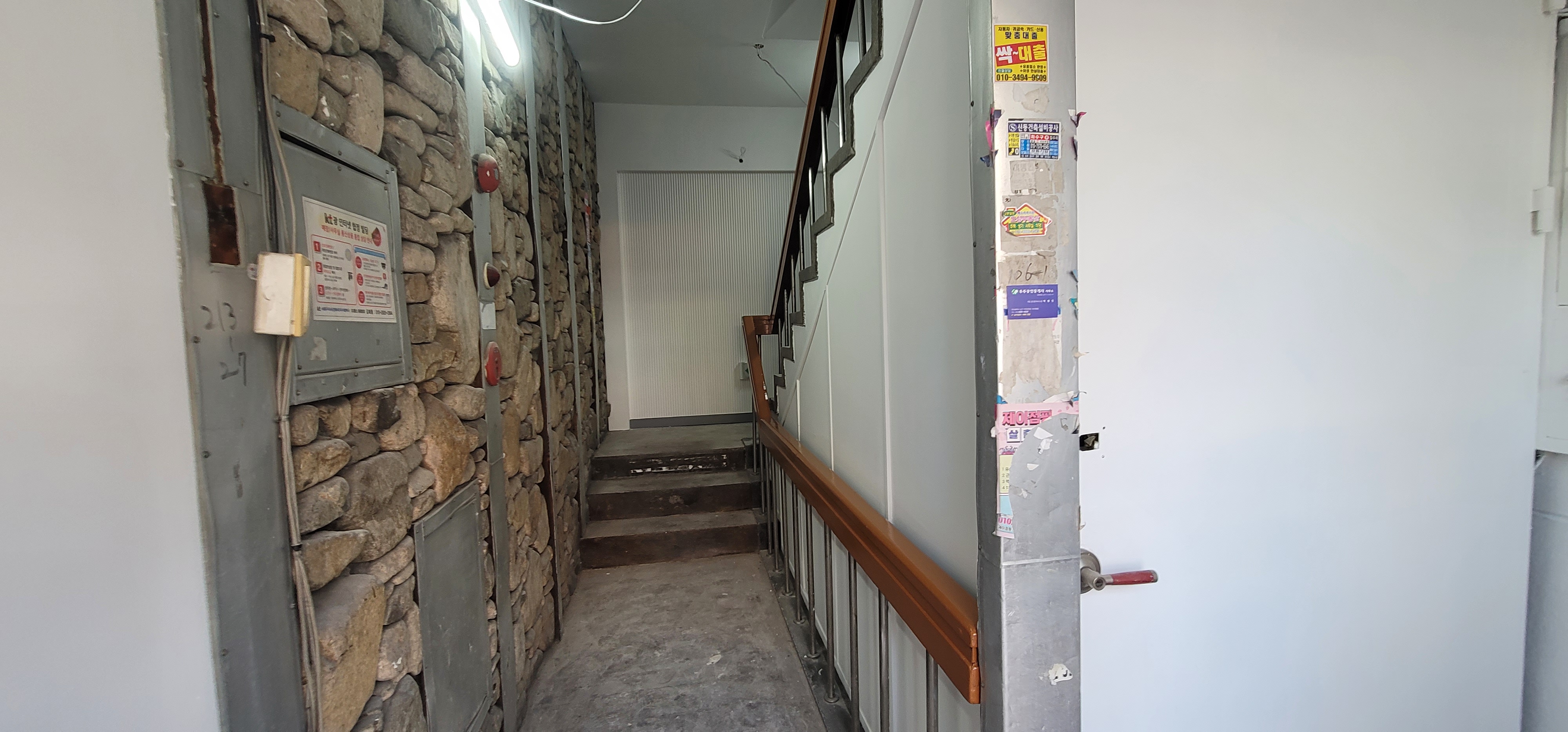자주 다니는 게계단실은 일찌기 수성 초벌 넣고 핸드레일