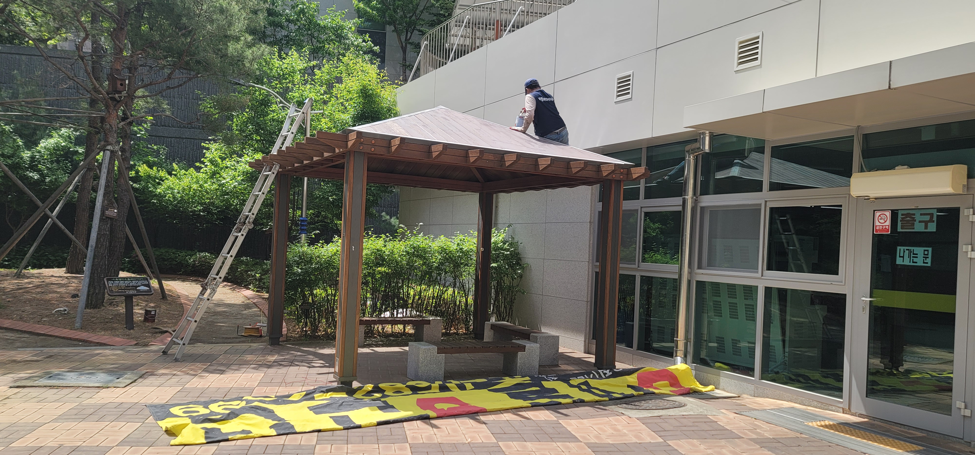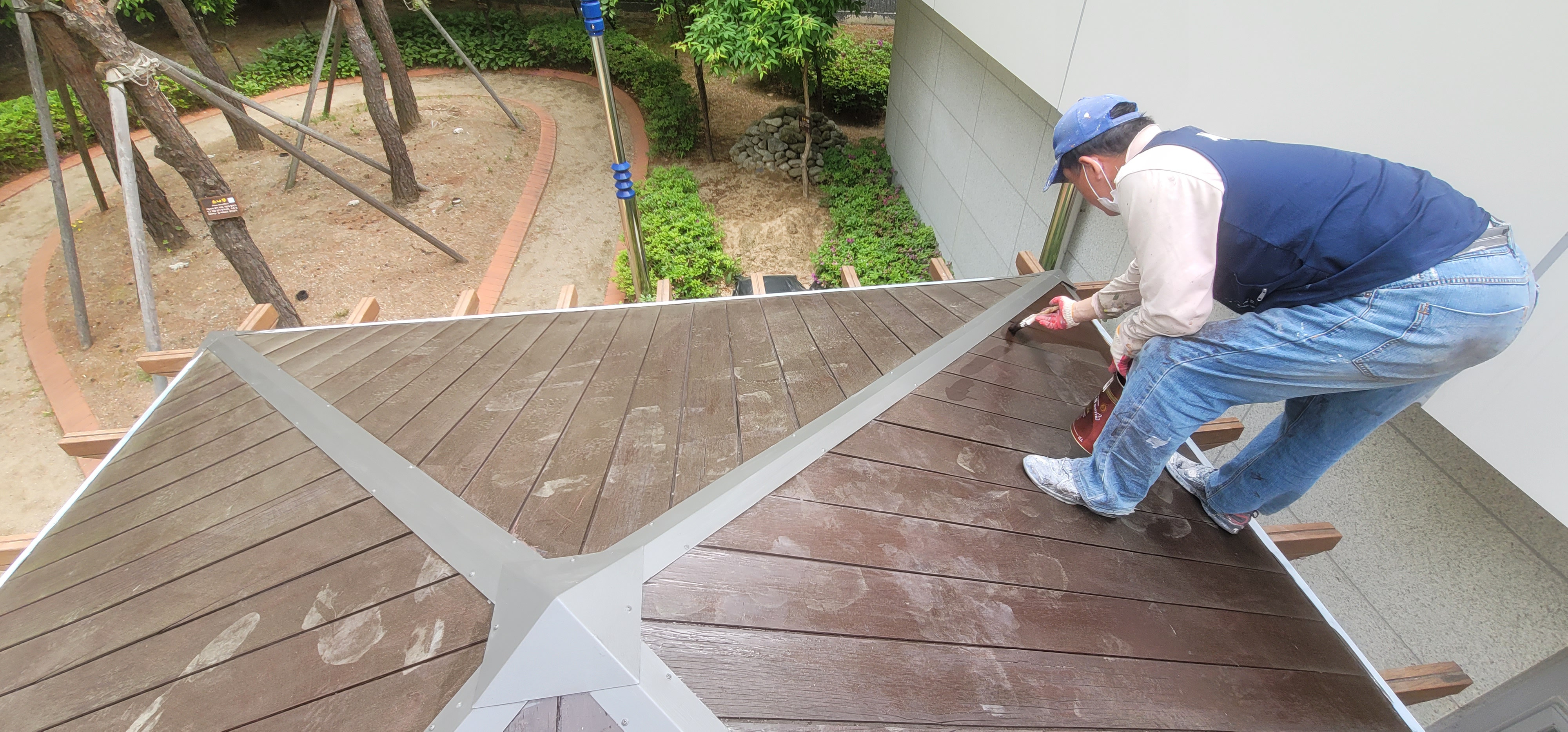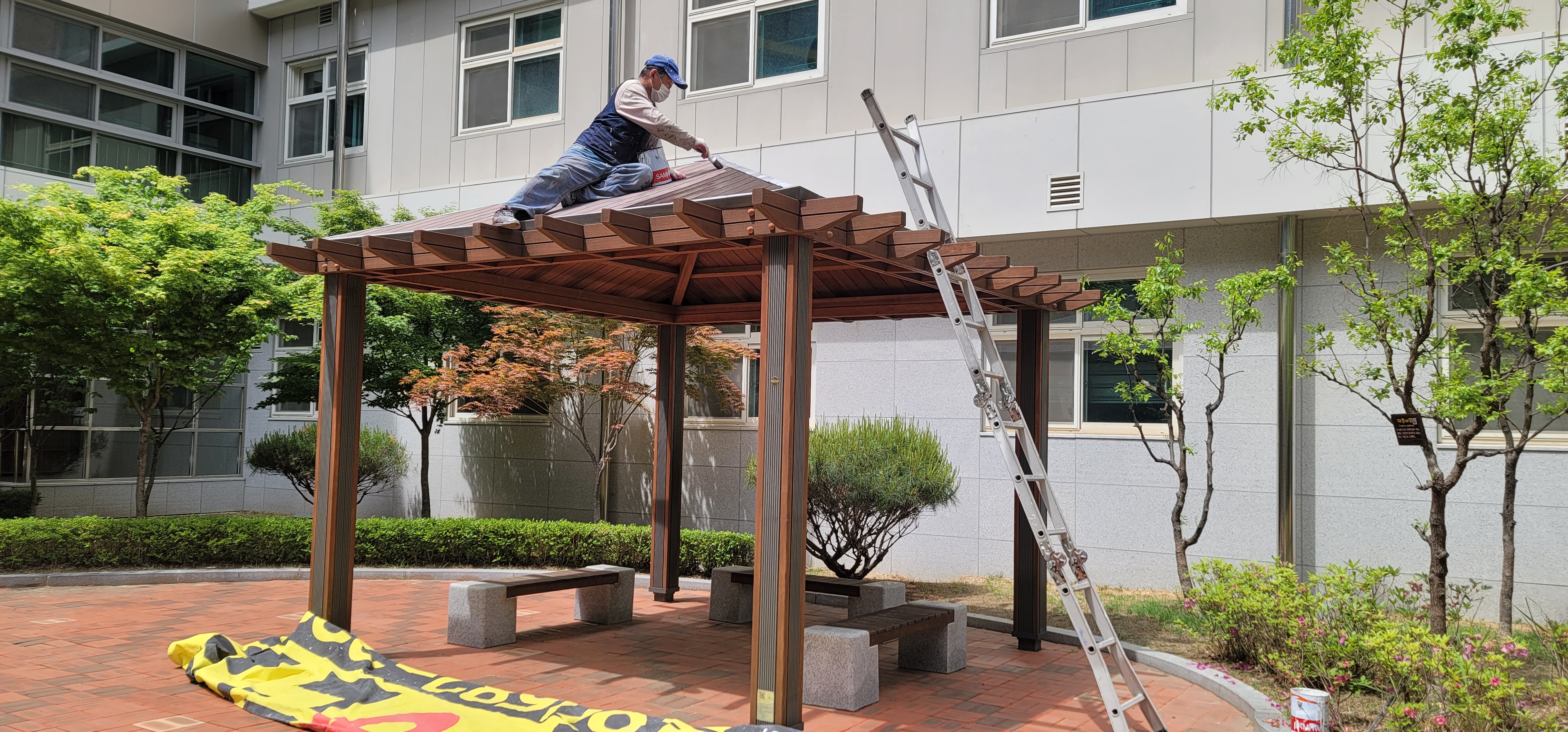 작업 구분: 파고라 정자 지붕 오일 스테인 도장
