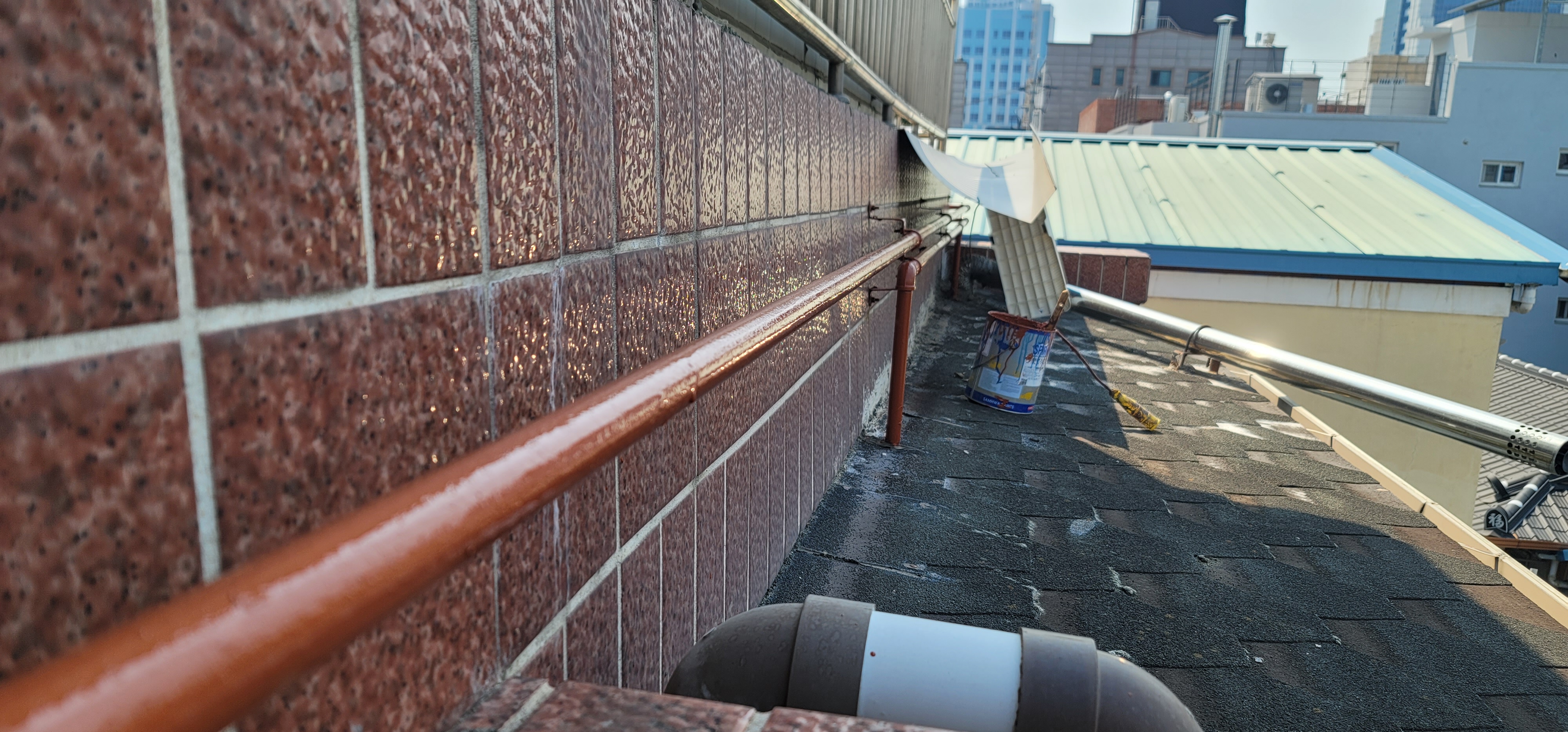 오후 늦게는 옥상 안벽을 바탕처리 하고 일찍 마무리를 하였다