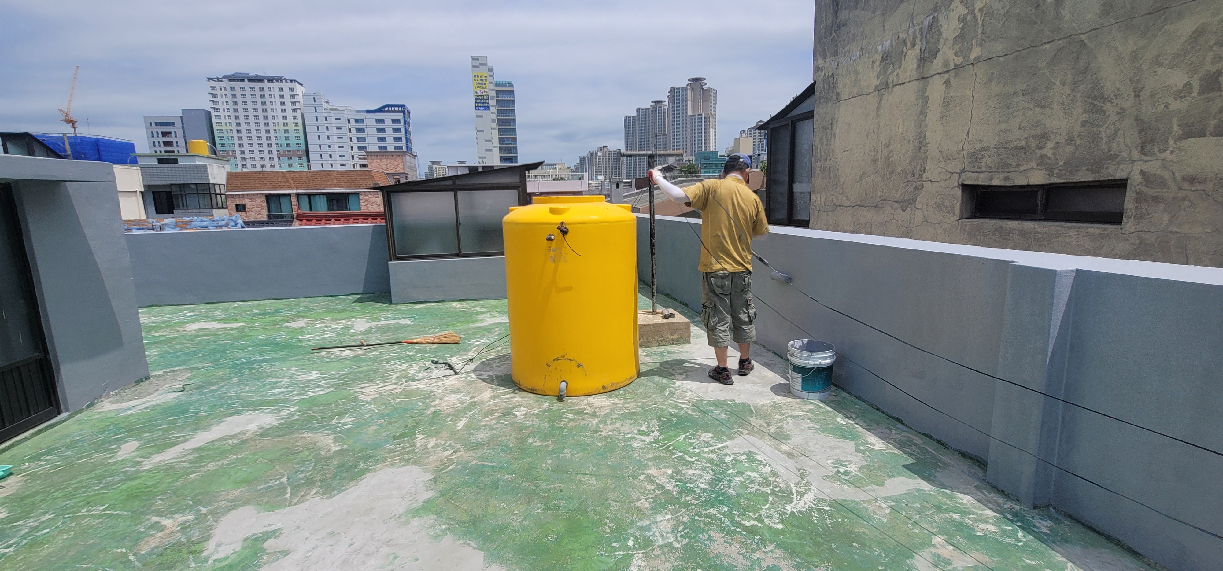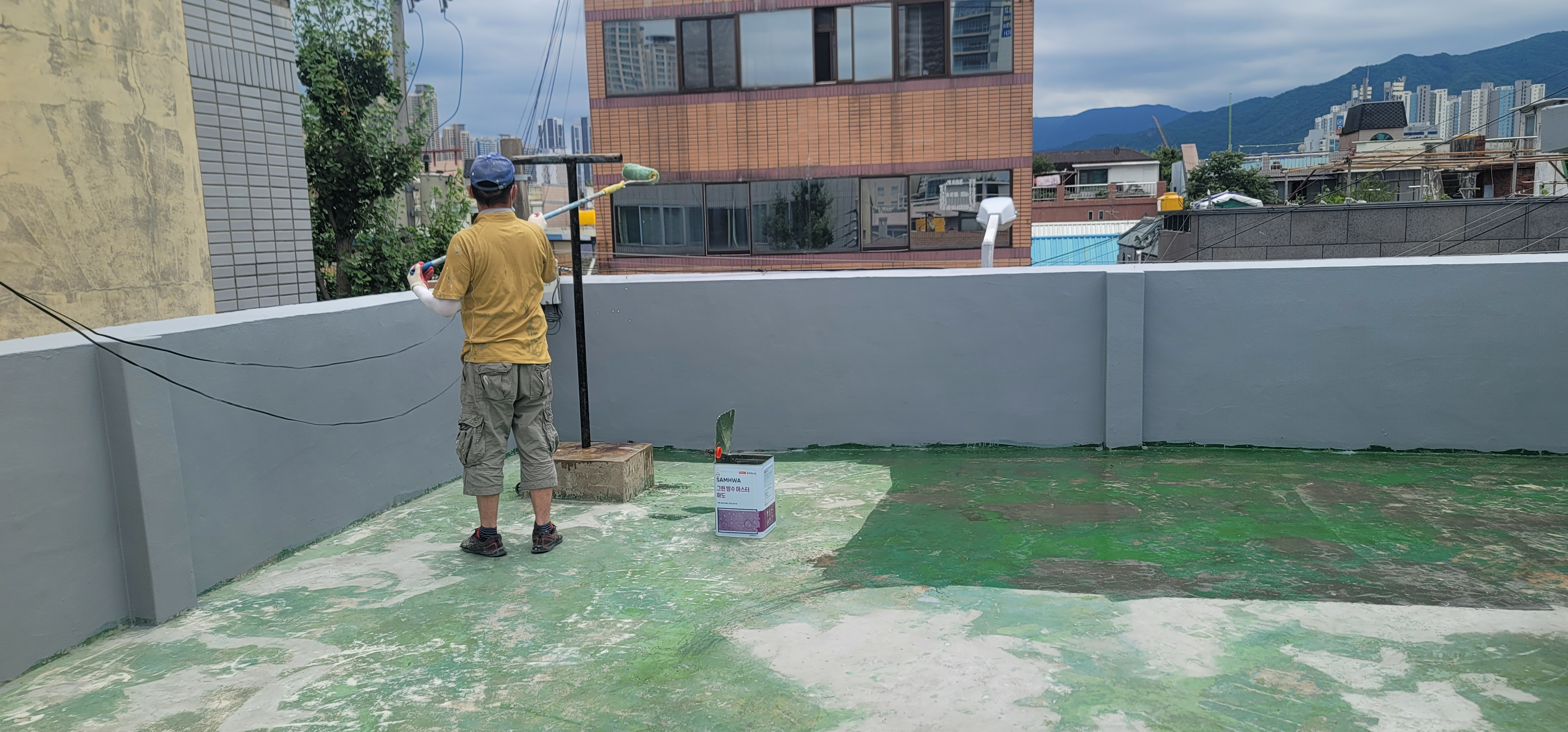 우레탄 탄성 방수 하도 작업으로 전체 를 발랐다