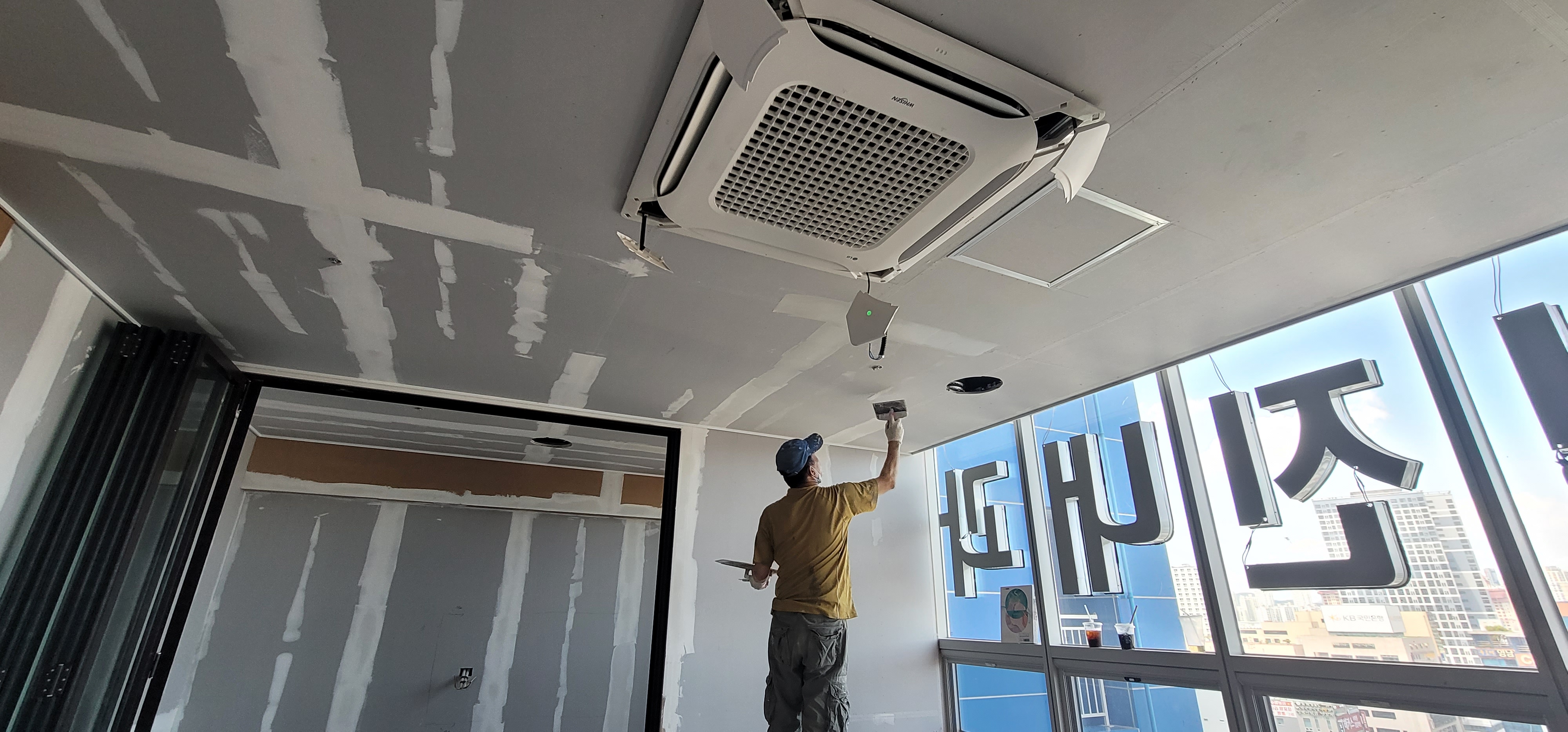 이런 공정에 전체 170m2의 석고 보드 위에 퍼티를 하는데