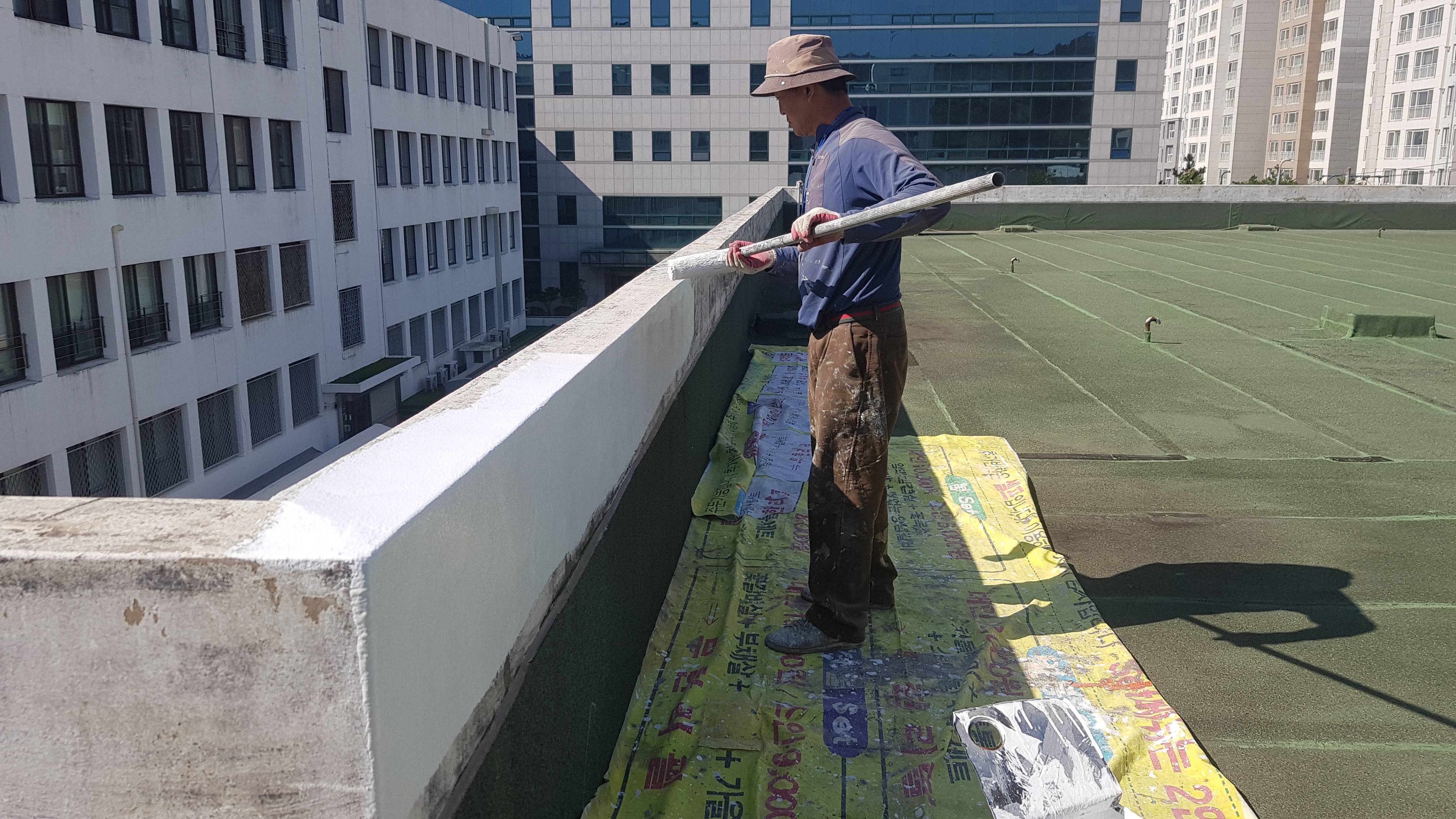 공사 일시: 2018년 10/20~10/30 현장 위치: 대구시 중구 삼덕동 작업 구분: 오피스텔 계단실 옥탑 천정 수성 페인트 작업 구분 1.계단실 옥탑 천정 수성 페인트 1)옥탑 천정 (20m2) 작업 방법 1.계단실 옥탑 천정 수성 페인트 -옥탑 노출 콘크리트 바닥 방수 완료 후 -구도막 박리 -콘크리트 세멘트 몰탈 보수 -수성 하도 프라이머 롤러 1회 도포 -아크로 외부용 수성 페인트 2회 롤러 도장 공사 재료 -삼화페인트 아크로 외부 수성 페인트 일절 특이 사항 1)도막 박리 후 청소가 힘들었슴 시공전 모바일 홈피-가보기