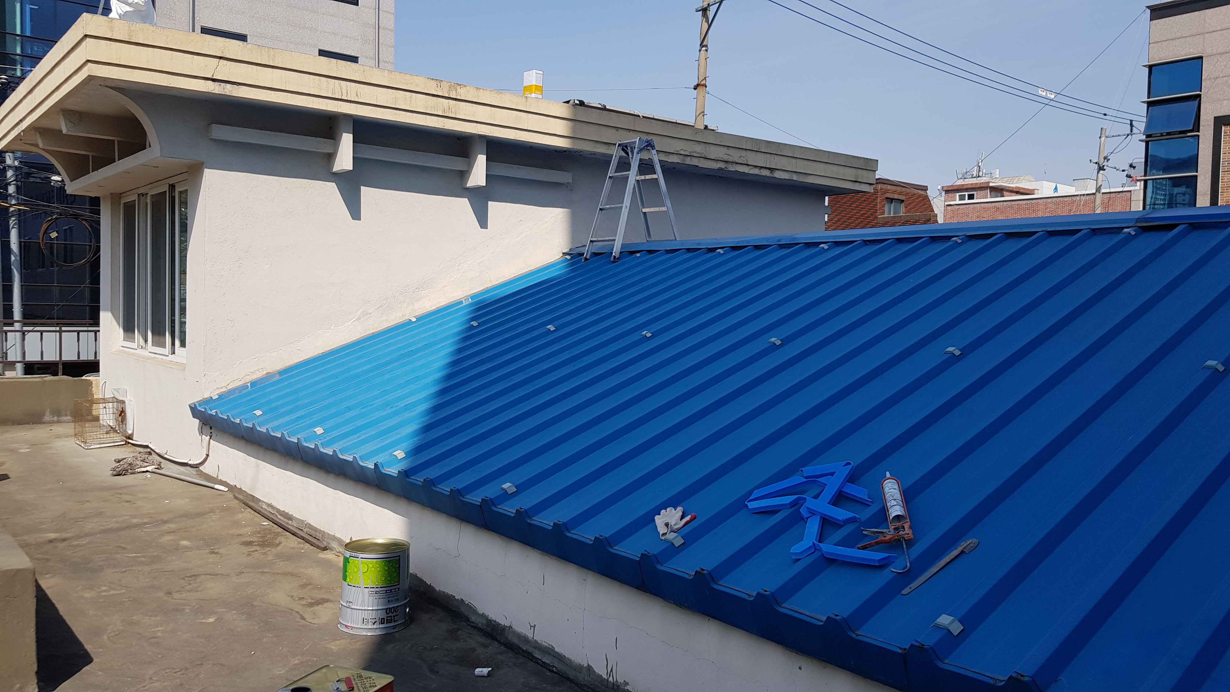 공사 일지: 2019년 4/30~2017 5/18 현장 위치: 대구시 중구 삼덕동 작업 구분: 주택 옥상 3mm 우레탄 방수(80m2) 작업 구분 1.바닥 3mm 우레탄 방수 도장 -1)옥상 바닥층(80m2) 2.지붕 칼라강판 덧공사 -1)지붕과거실 거실과 연결 부분 10m ----------------------------------------------------------------------------- 작업방법 1.바닥 3mm 우레탄 방수 도장 -기존 우레탄 들뜸 박리 부분 면갈이 -시멘트 몰탈 보강 작업 -충분히 건조 후 우레탄 하도 프라이머 도포 -우레탄 중도제 3mm 도포 -우레탄 탑코팅 마무리 2.지붕 칼라강판 덧공사 -0.6T 칼라 강판 도면 절곡 -앙카 볼트 및 씨리콘 덧 공사 -연결..