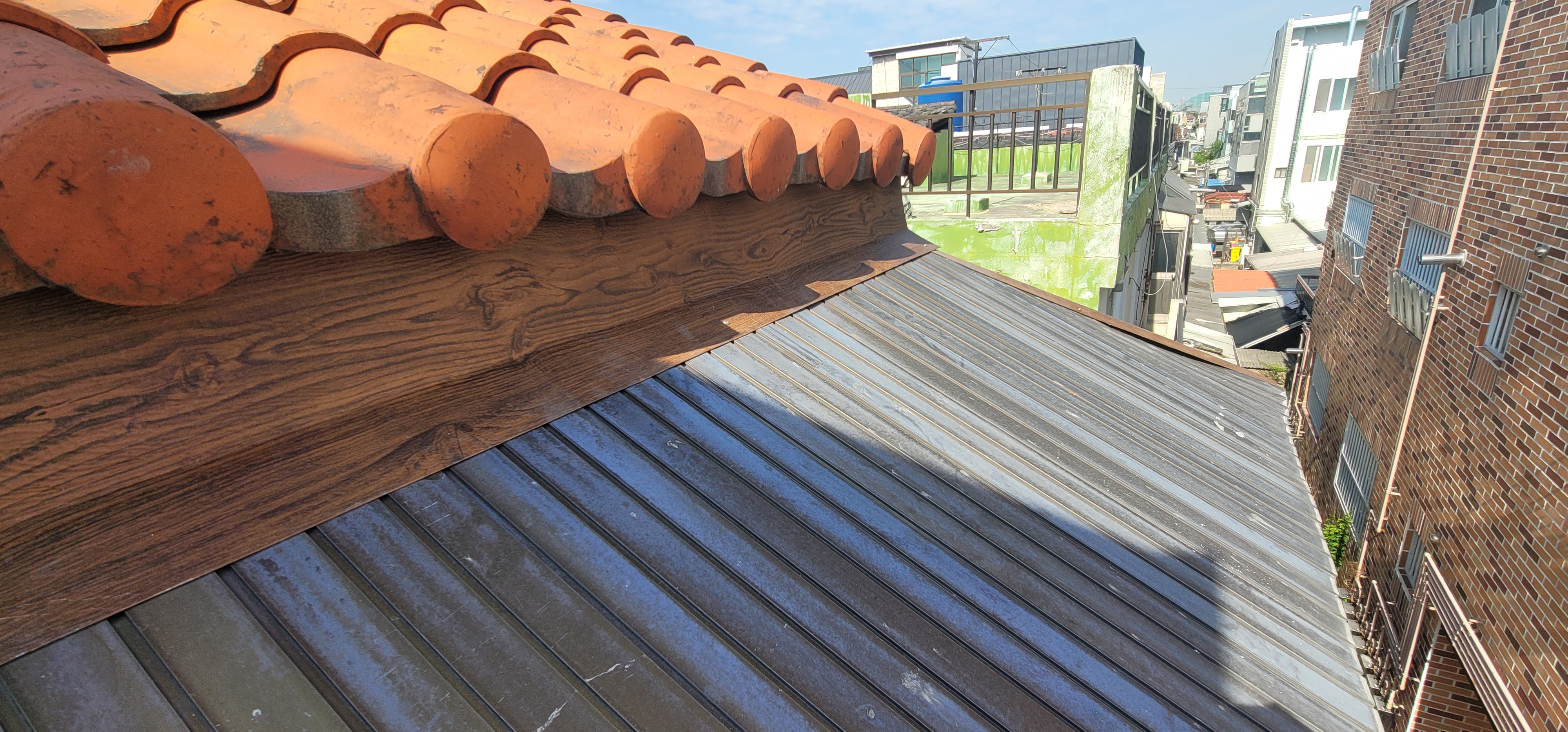 대구시 수성구 수성동 옥상 3mm 우레탄 방수-1.고압세척 2022년7월5일(화) ☞아침 기온/25도 ☞날씨/맑음 구분: 고압세척 Hot Line: 010-2229-7704 올해는 평년 보다 폭염이 20일이나 앞 당겨 왔다 수성동에 있는 2층 주택으로 너무 오래 되어 방수 흔적이 조금은 남았지만 너무 험했다 먼저 4인치 그라인더로 기본 처리 하고 고압 세척 장비 준비 하고 2층 거실을 타 넘고 옥상에 고압 세척 작업을 한다 수도 연결하고 전기 물리고 옥상에 가져간 고압 노즐을 쏘았다 이끼는 기본이고 남은 도막들이 막 날라 간다 의지는 다 제거 했어면 싶지만 쉽지는 않아 최선을 다할 뿐이다 폐선 정리 하고 깨어진 몰탈을 자루에 내리고 말끔히 절리 하고 다음 공정을 기약하고 내려 왔다 모바일 홈피-가보기