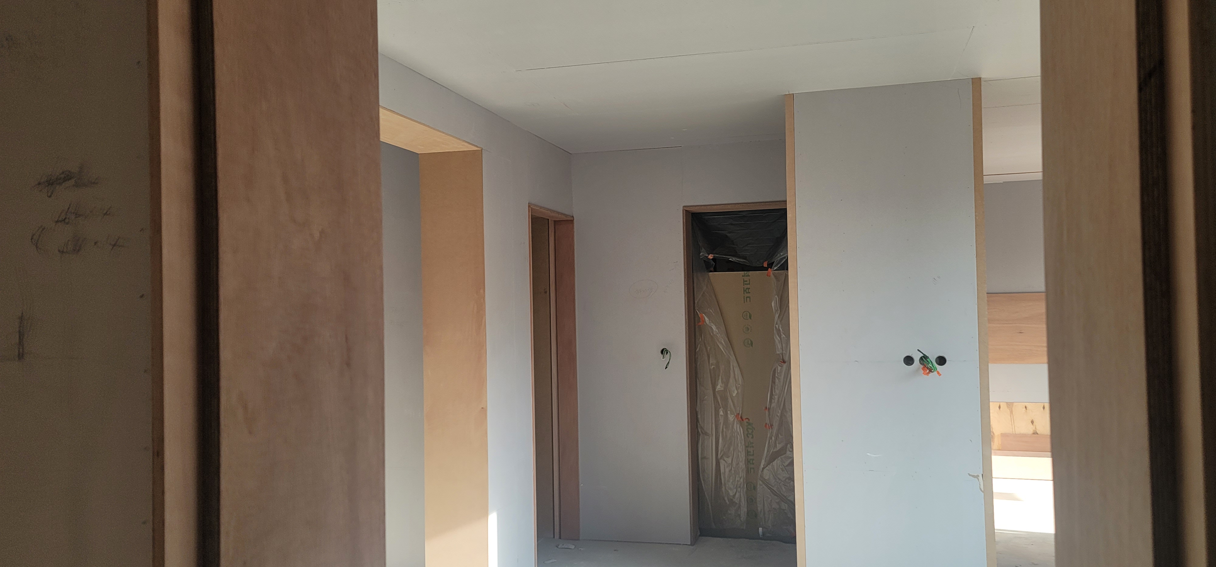 대구시 수성구 두산동 주택 내부 리모델링 벤자민무어 페인트 스커프 도장-5.에어레스 뿜칠 마무리 2022년3월4일(금) ☞아침 기온/-1도 ☞날씨/맑음 구분: 석고보드 작업:4.에어레스 뿜칠 마무리 3명이 5일째 마무리 하는 날이다 한사람이 하나씩 전구불로 비추며 사포질과 미비한데 수성 씨리콘으로 보수를한다 초벌 위에 사포질은 220번 사포를 서로 맞대어 문질러 날을 무디게 해서 슬슬 쳐야 한다 사포 자국이 남아서는 안되고 조그만 흠이 있어도 최종 마무리에는 해가 된다 오전에 에어레스로 벤자민무어 스커프 엑스로 처벌 넣고 순두부 점심에 배를 체우고 오후에 최종 마무리로 작업을 끝냈다 또 에어레스 뿜칠이 끝났어도 끝이 난것이 아니다 비닐 카바링도 제거 하고 청소도 해야하고 연장도 챙기고 그 나름데로 바쁘게..