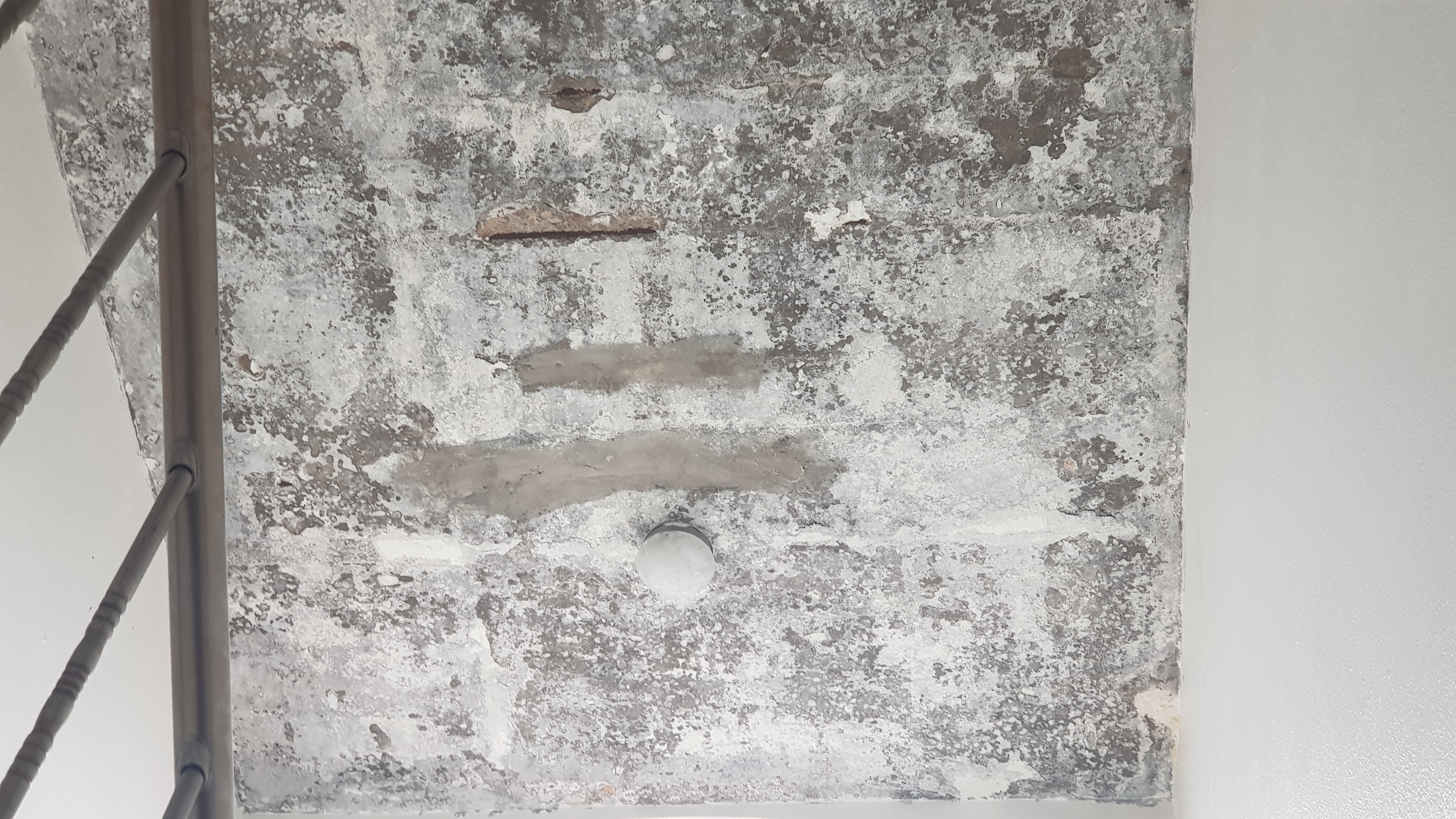 (옥탑 바닥이 장기적인 방수 불량으로 옥탑 천정에 영향을 끼쳐 콘크리트