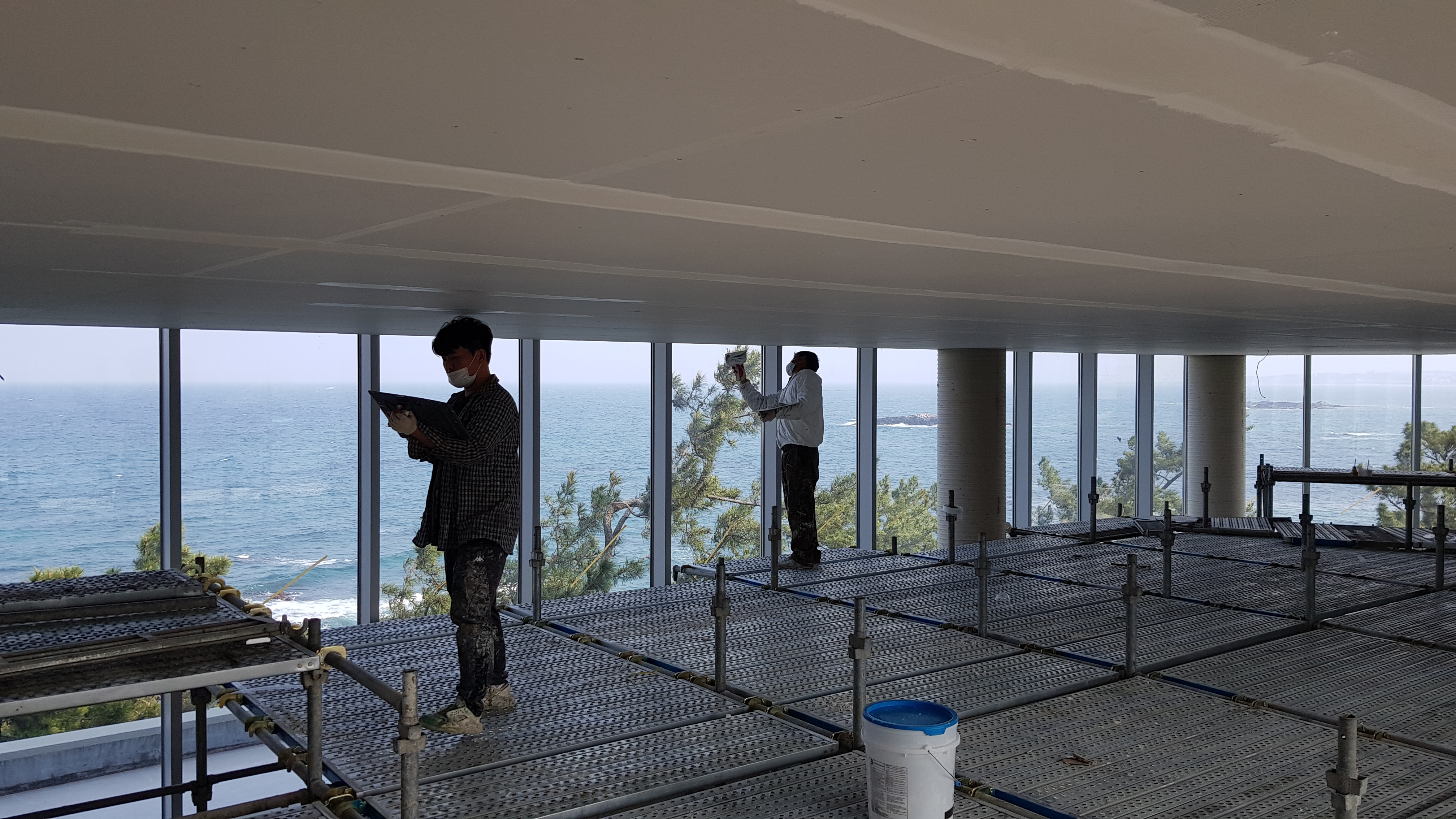포항시 흥해읍 오도리 신축 카페(어레인지먼트) 내부 천정 석고보드 수성 페인트 도장