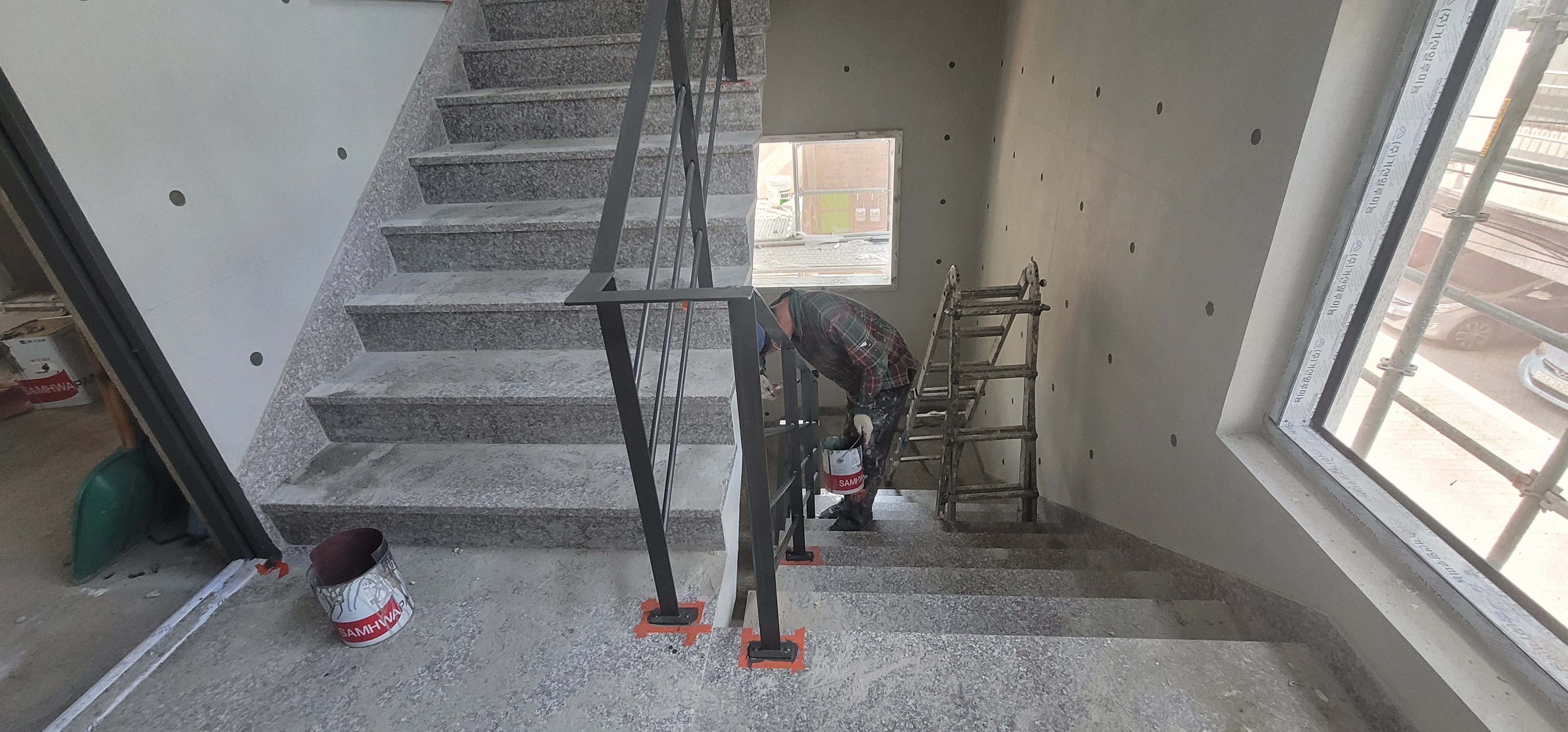 대구시 대명동 신축 복합 상가 주택 계단실 철재 난간-3. 철재 우레탄 페인트