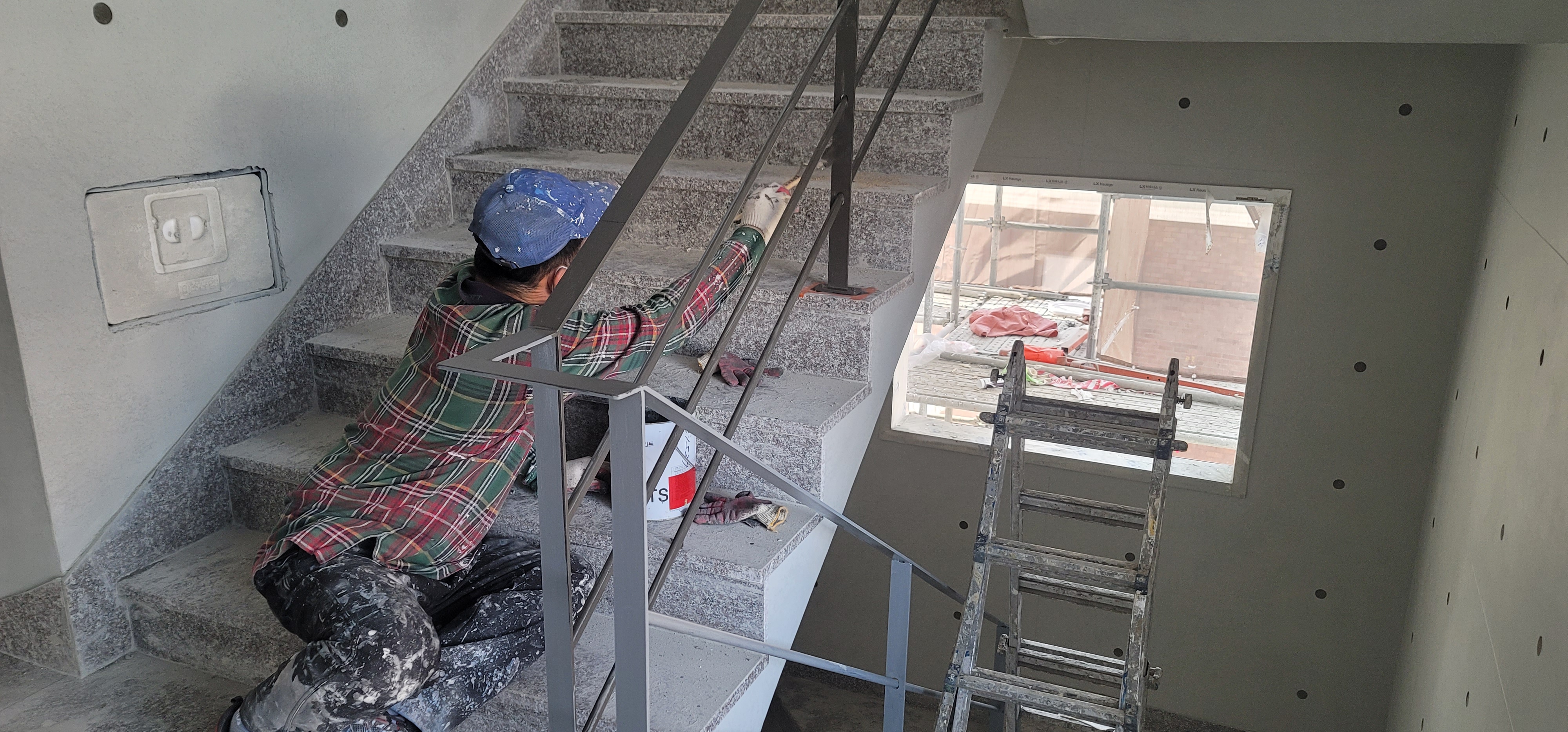 계단실 철재 우레탄 페인트 도장을 한다