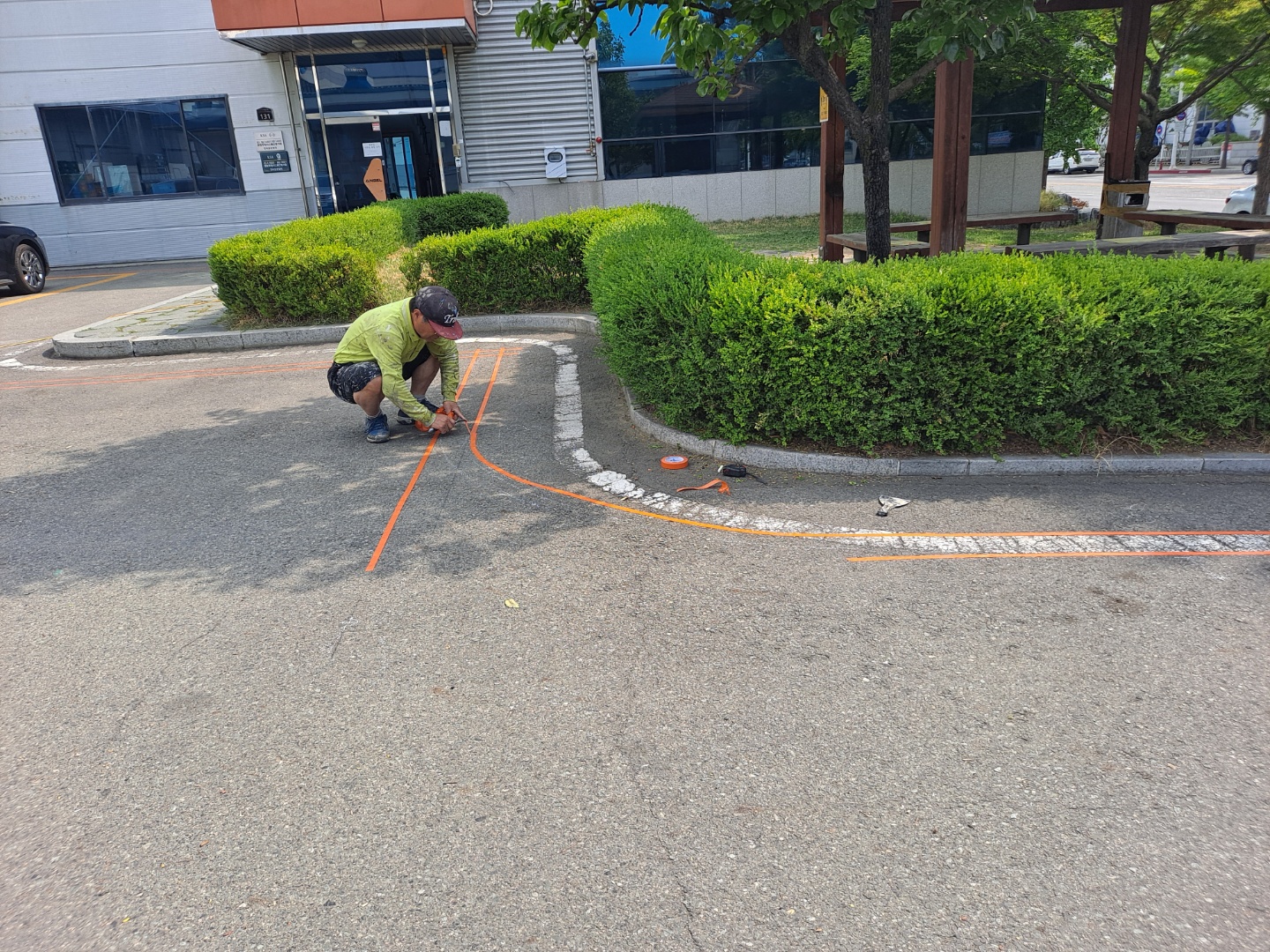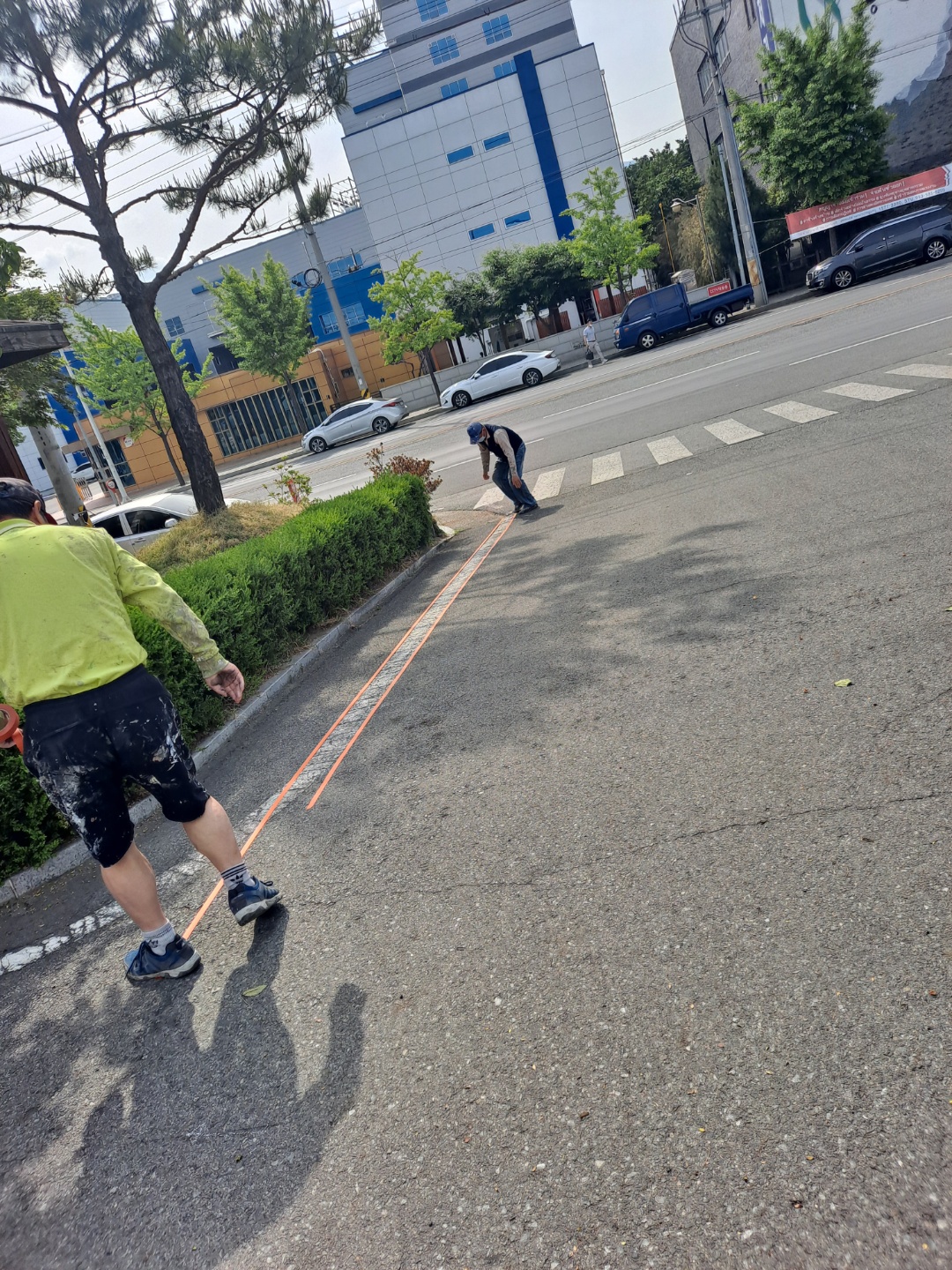 내일은 황색 도로표시용 상온 건조형 페인트 2회 도장으로 마무리
