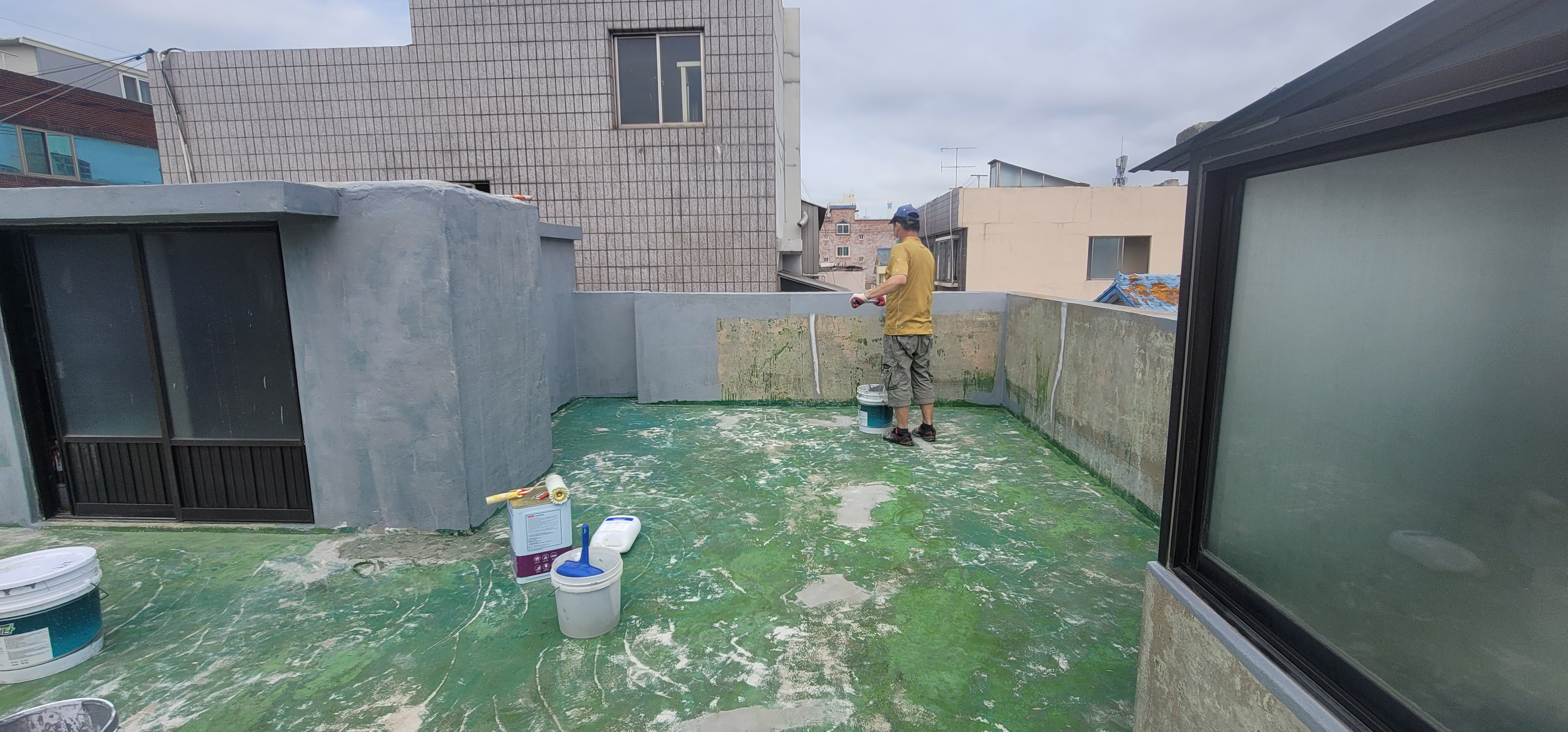 우레탄 탄성 방수 하도 작업으로 전체 를 발랐다