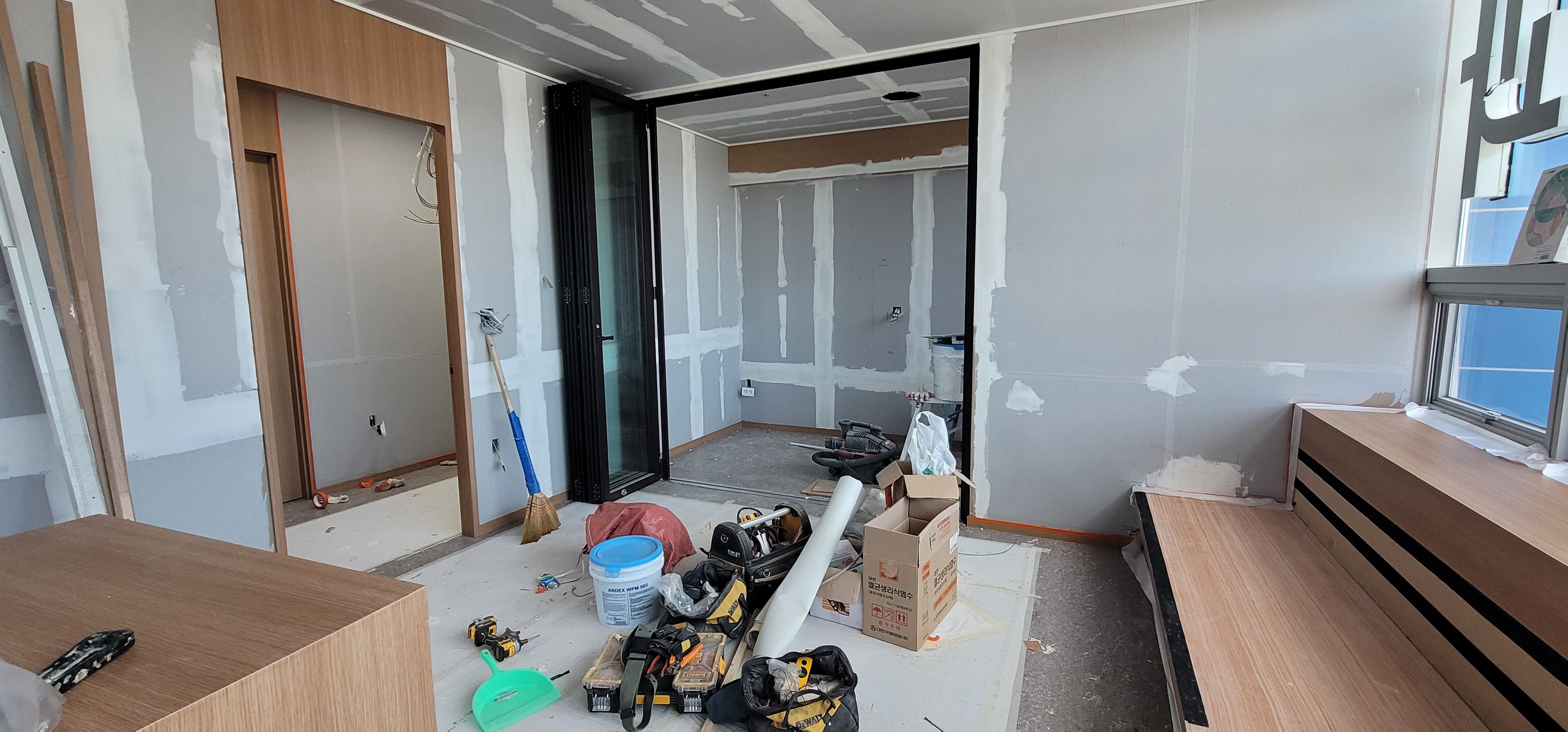 이런 공정에 전체 170m2의 석고 보드 위에 퍼티를 하는데